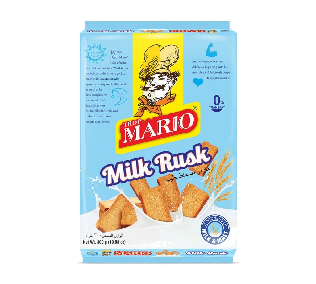 Discover the irresistible taste of Mario Milk Rusks, your perfect tea-time companion.