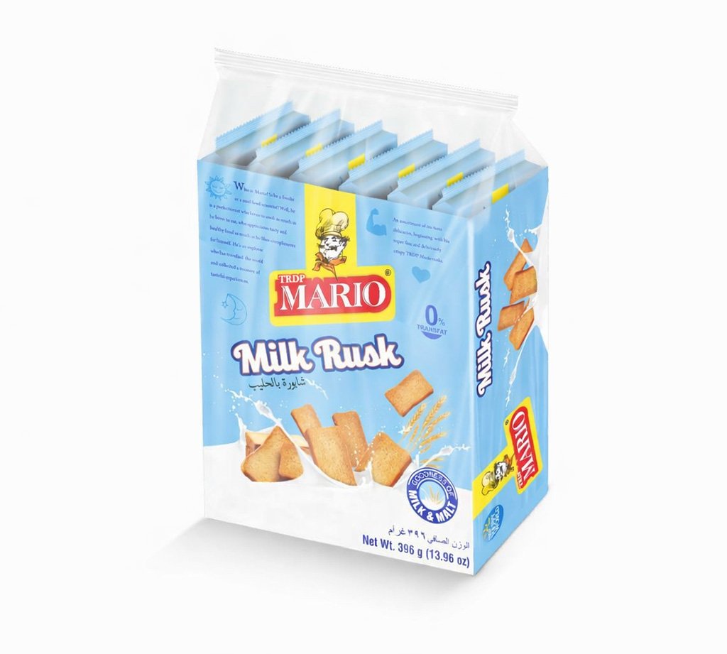 Savor the satisfying crunch of Mario Milk Rusk 396Gm, crafted from premium ingredients for a delightful snacking experience.