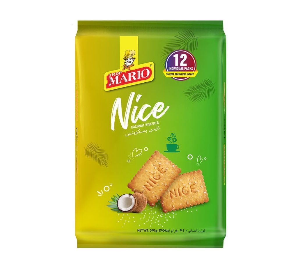 Mario Nice Coconut Biscuits deliver a delightful burst of tropical coconut flavor, combined with a satisfying crunch.